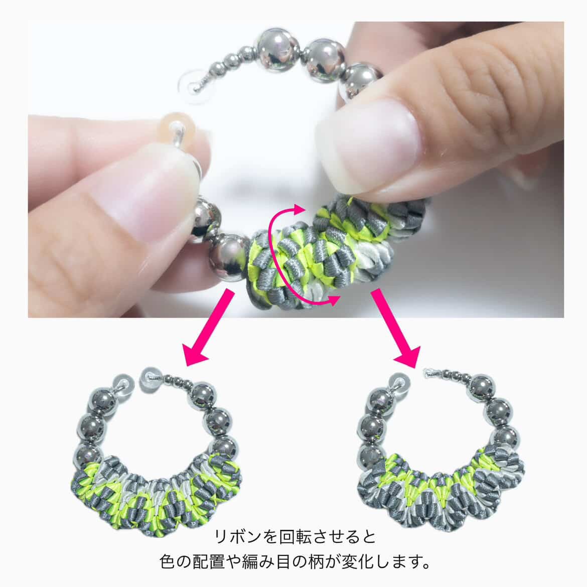 高品質なリボン素材を使用しており、耐久性と快適さを兼ね備えたデザインが特徴です。シンプルながらもエレガントなフォルムがスタイルに品を与え、どんなコーディネートにもマッチします。また、軽量で装着も簡単なため、日常のアクセントとしてお使いいただけます。